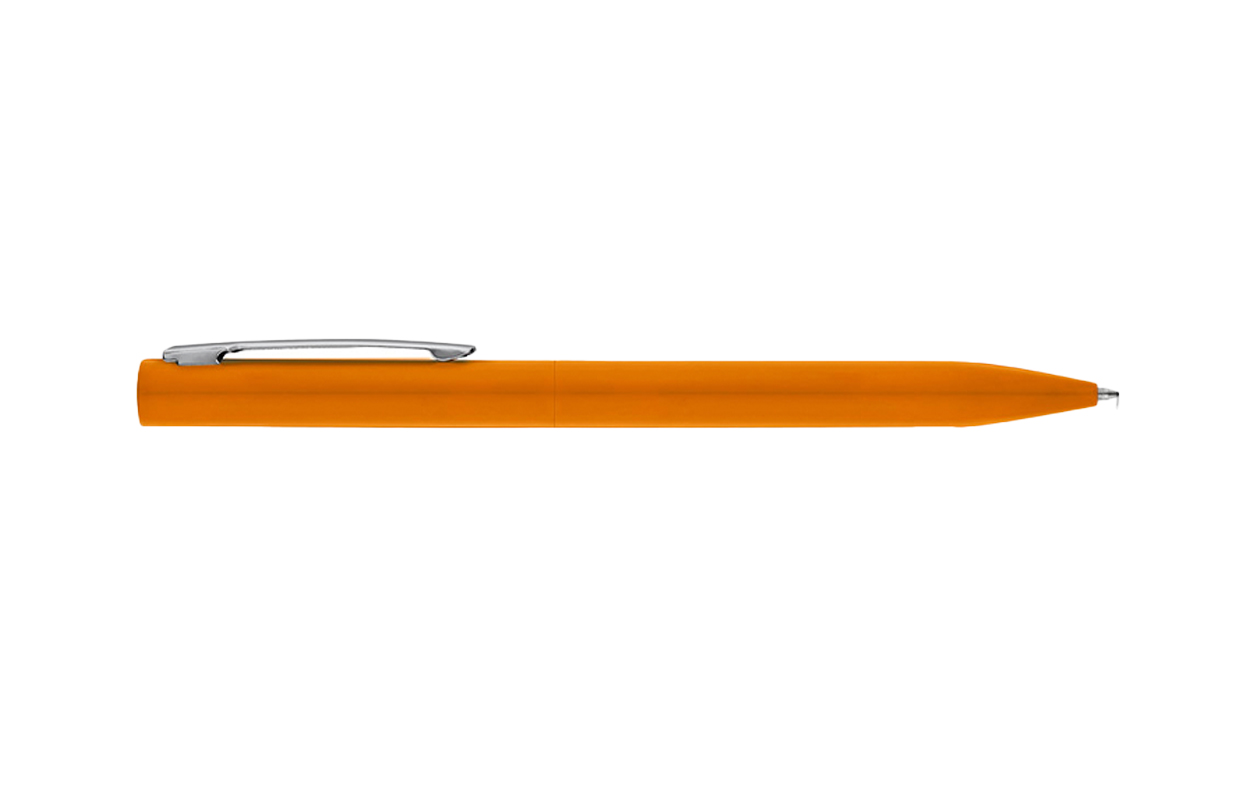 Bolígrafo fabricado en aluminio con mecanismo de giro, clip metálico con acabado cromado brillante. El cuerpo está lacado en acabado brillante. Tinta azul. Carga metálica con Tinta Dokumental® azul. Se suministra en estuche de regalo (desmontado).