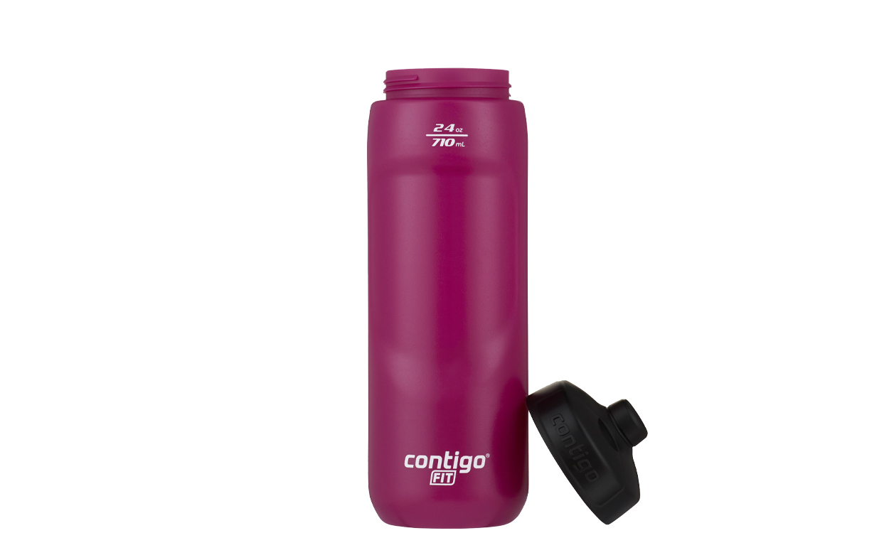 • Botella Contigo Fit Spill Proof sistema Squeeze: al apretar la botella, sale automáticamente el líqudo • Tecnología de válvula unidireccional que previene derrames • Franja de visión clara para ver fácilmente el nivel del agua • Botella de fácil limpieza, para evitar manchas y olores • Libre de BPA • Capacidad de 710ml