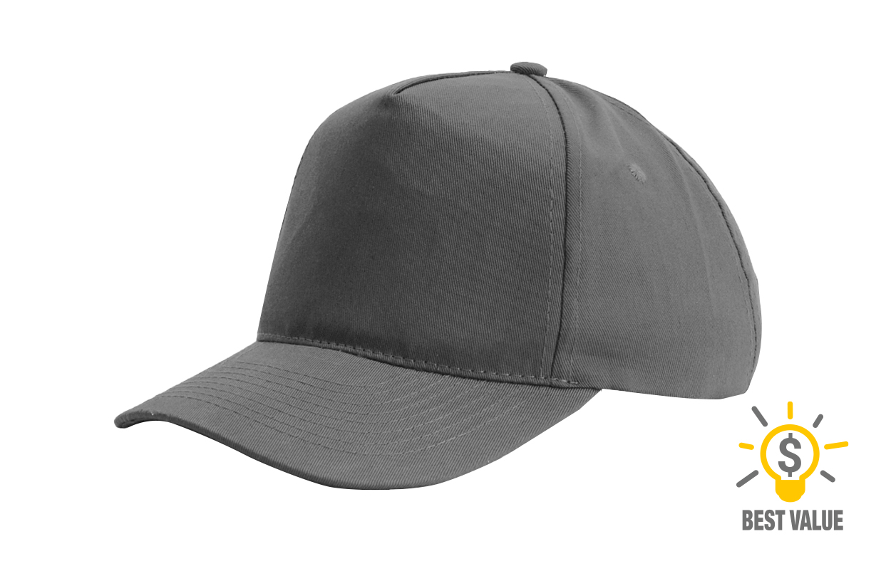 5 gajos. 100% poliéster. Con cierre de velcro. 8 hileras de costuras en visera.