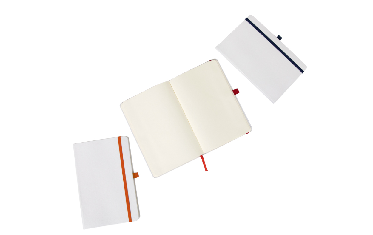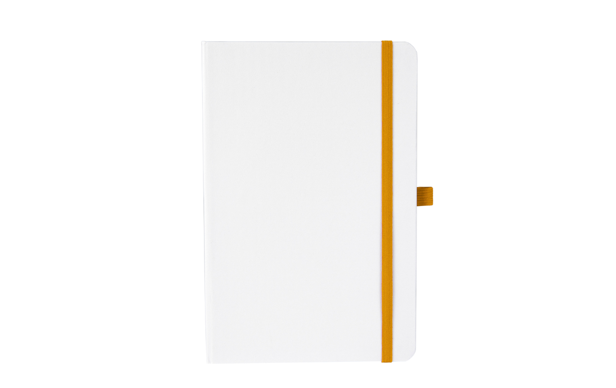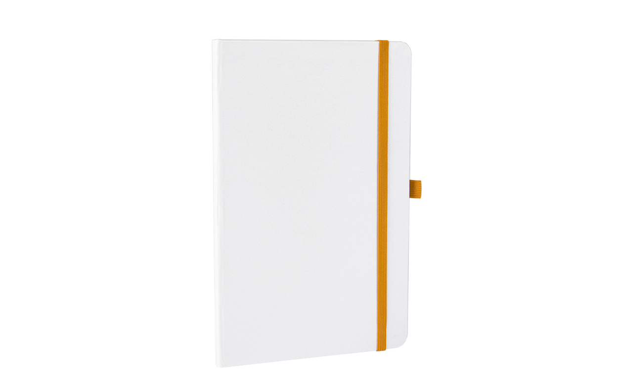 Cuaderno A5 con soporte para bolígrafo, separador de tela y cierre elástico de color