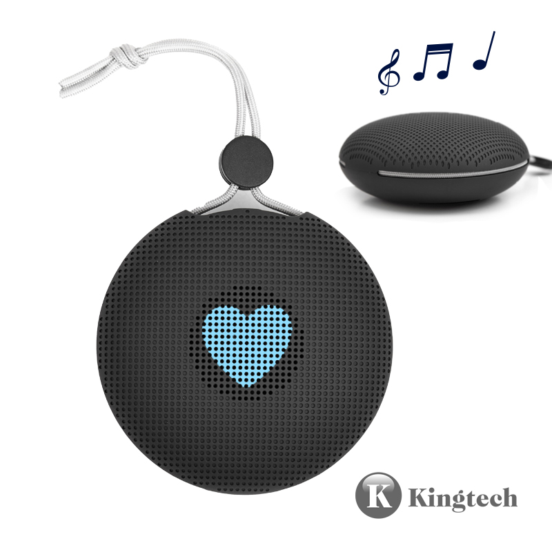 Parlante circular portátil con tecnología bluetooth y micrófono manos libres. Realizado en ABS, con correa para colgarlo y facilitar su transporte. | Batería de 400mAh | Potencia del parlante: 3W | Frecuencia: 60Hz-16KHz | Conexión5v/300mA | Peso: 159g | Medidas ø98*45mm | Kingtech