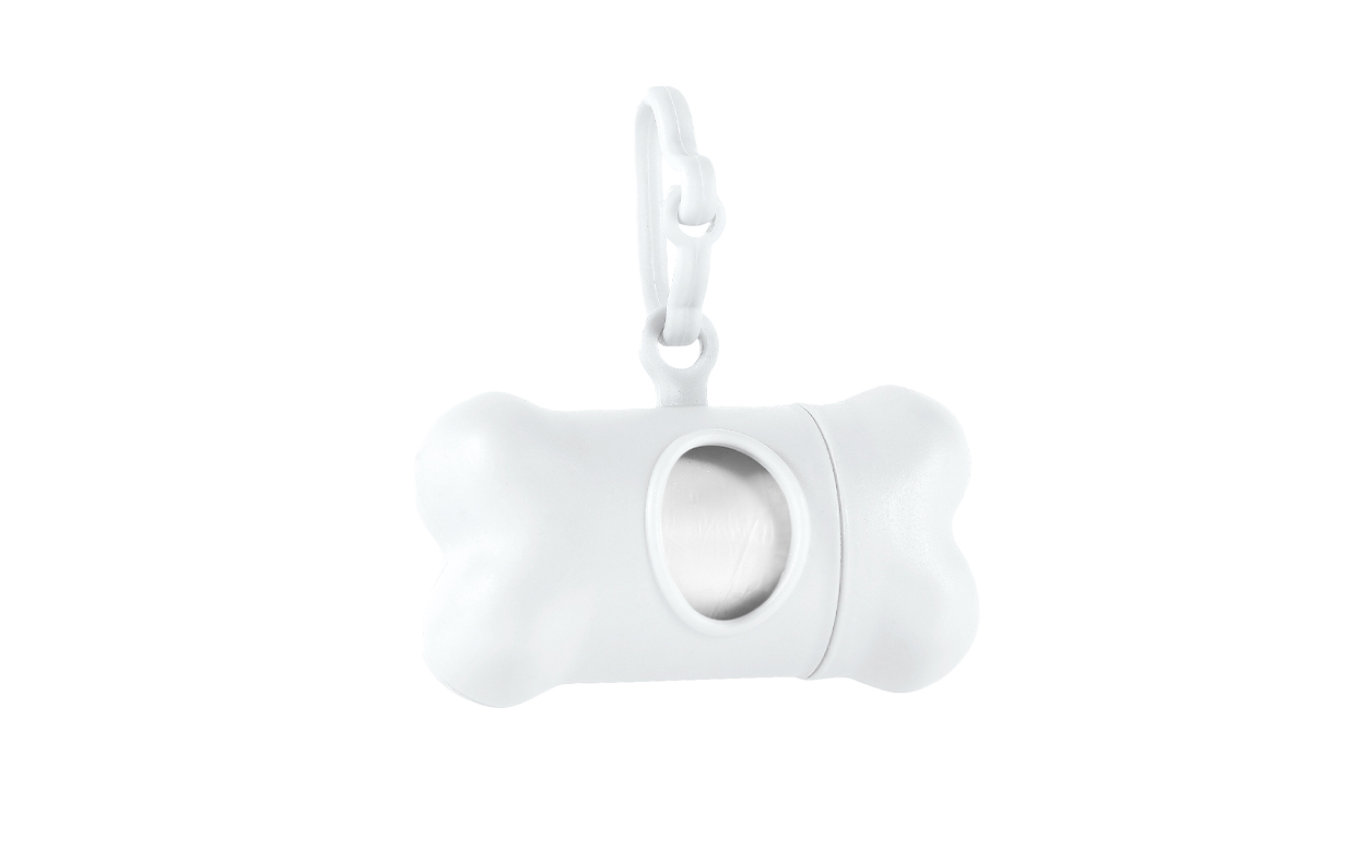 Dispenser de bolsas sanitarias para mascotas en forma de hueso. Incluye 20 bolsas de plástico sanitarias. Tamaño cerrado: 111 x 21 x 15 mm Material Polipropileno (PP)